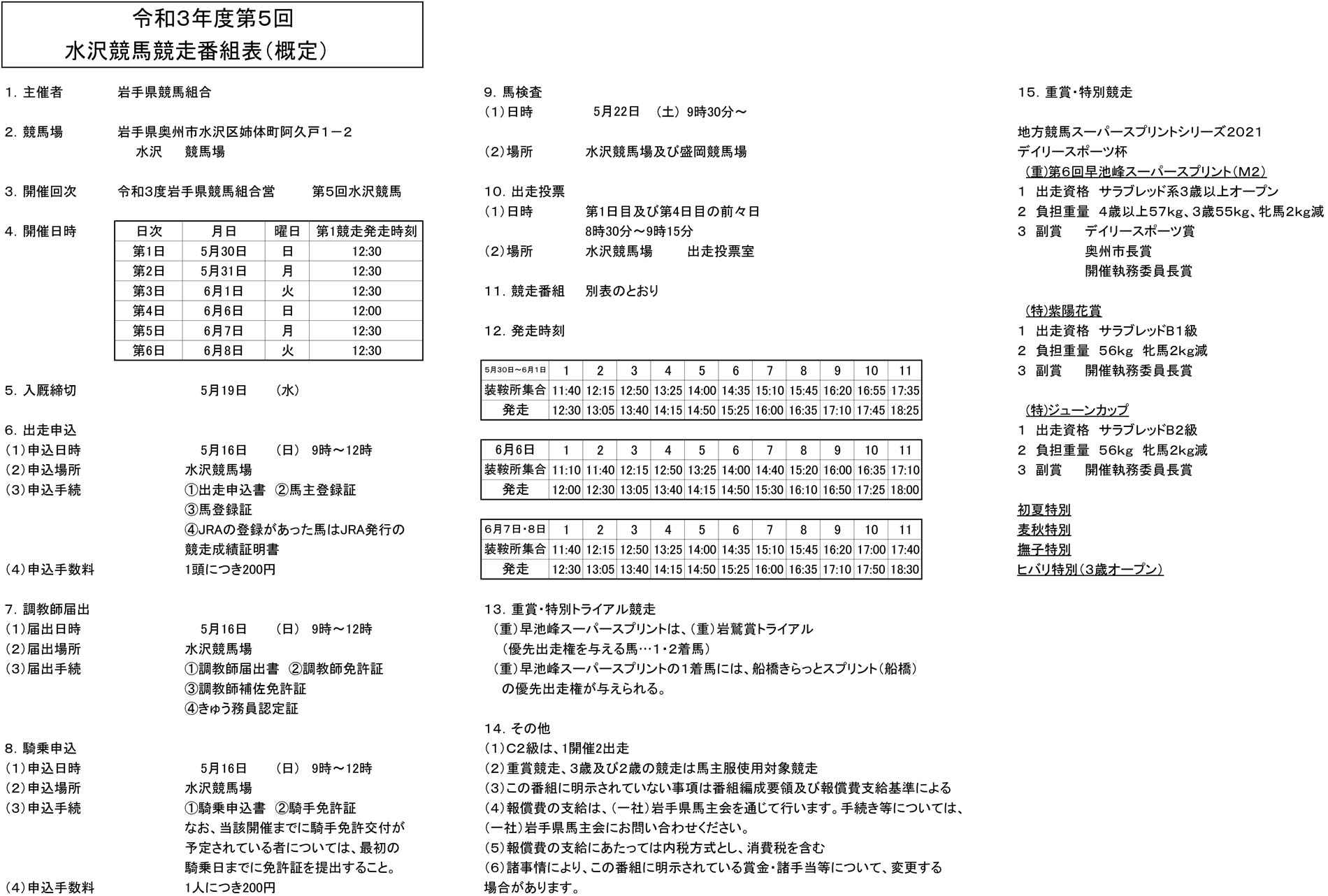 令和3年度 第5回水沢競馬概定番組(5/30~6/8)