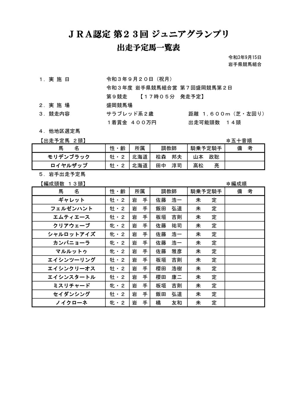 第23回ジュニアグランプリM1/地方他地区所属出走予定馬について(5)