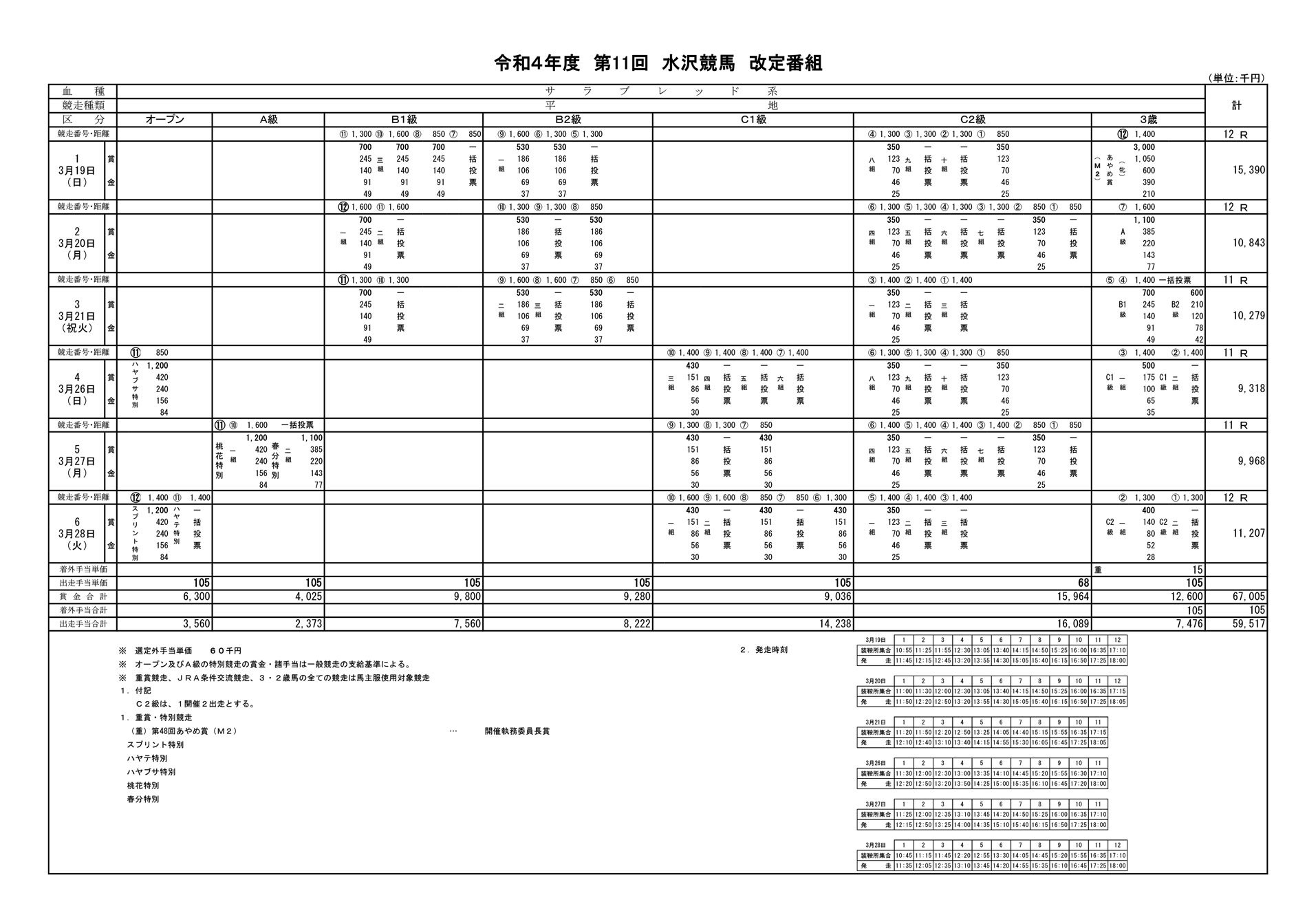 令和4年度 第11回水沢競馬改定番組(3/19~3/28)