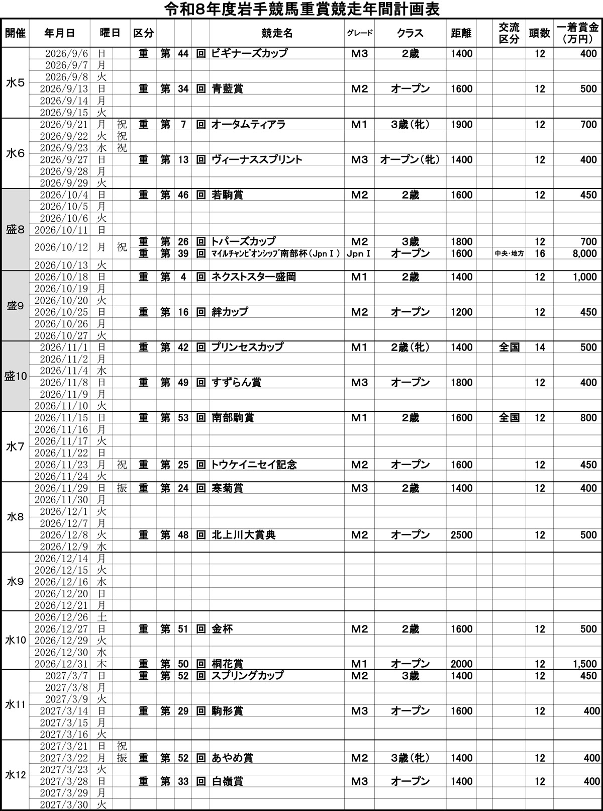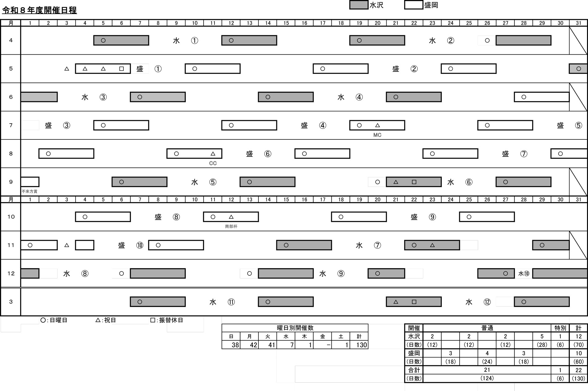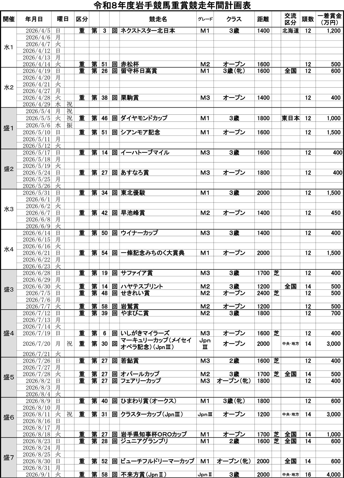 2026シーズンの岩手競馬開催日程につきまして、次のとおりおしらせいたします。