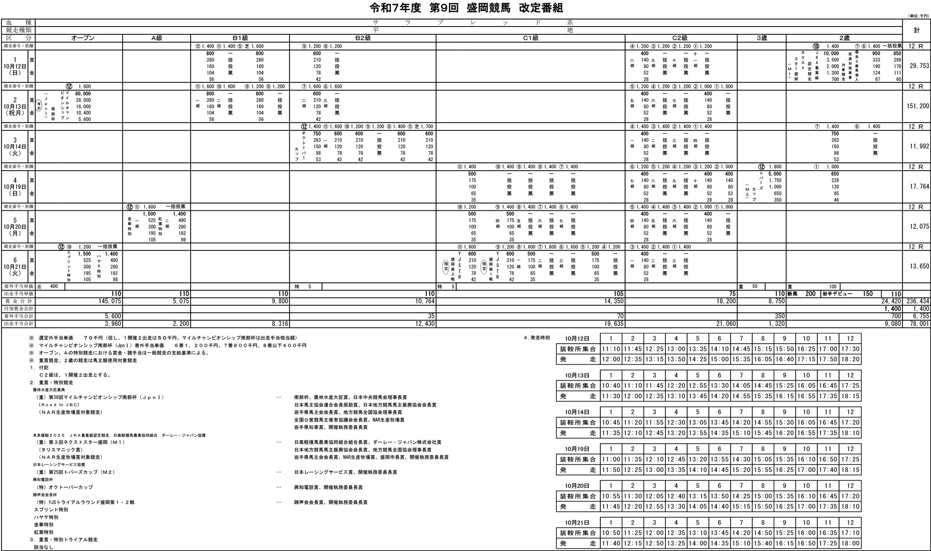 令和7年度 第9回盛岡競馬改定番組(10月12日~10月21日)