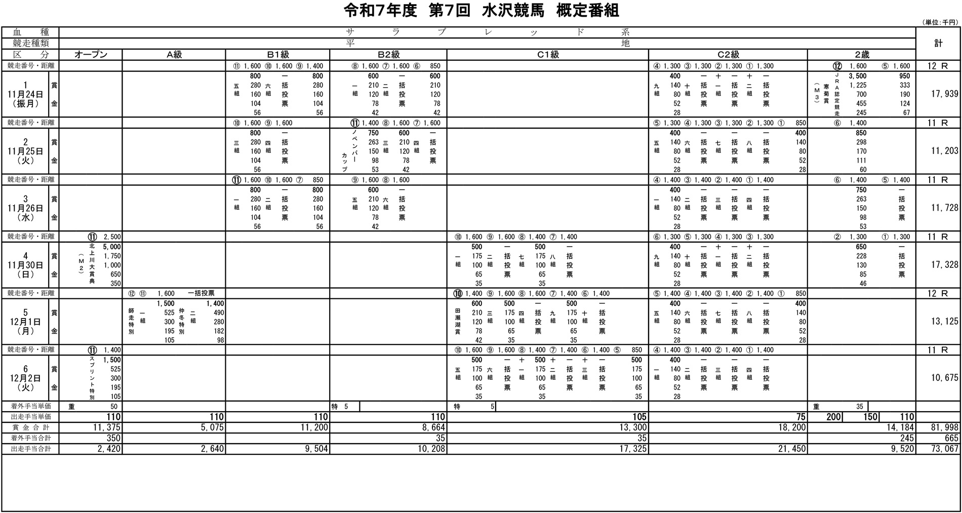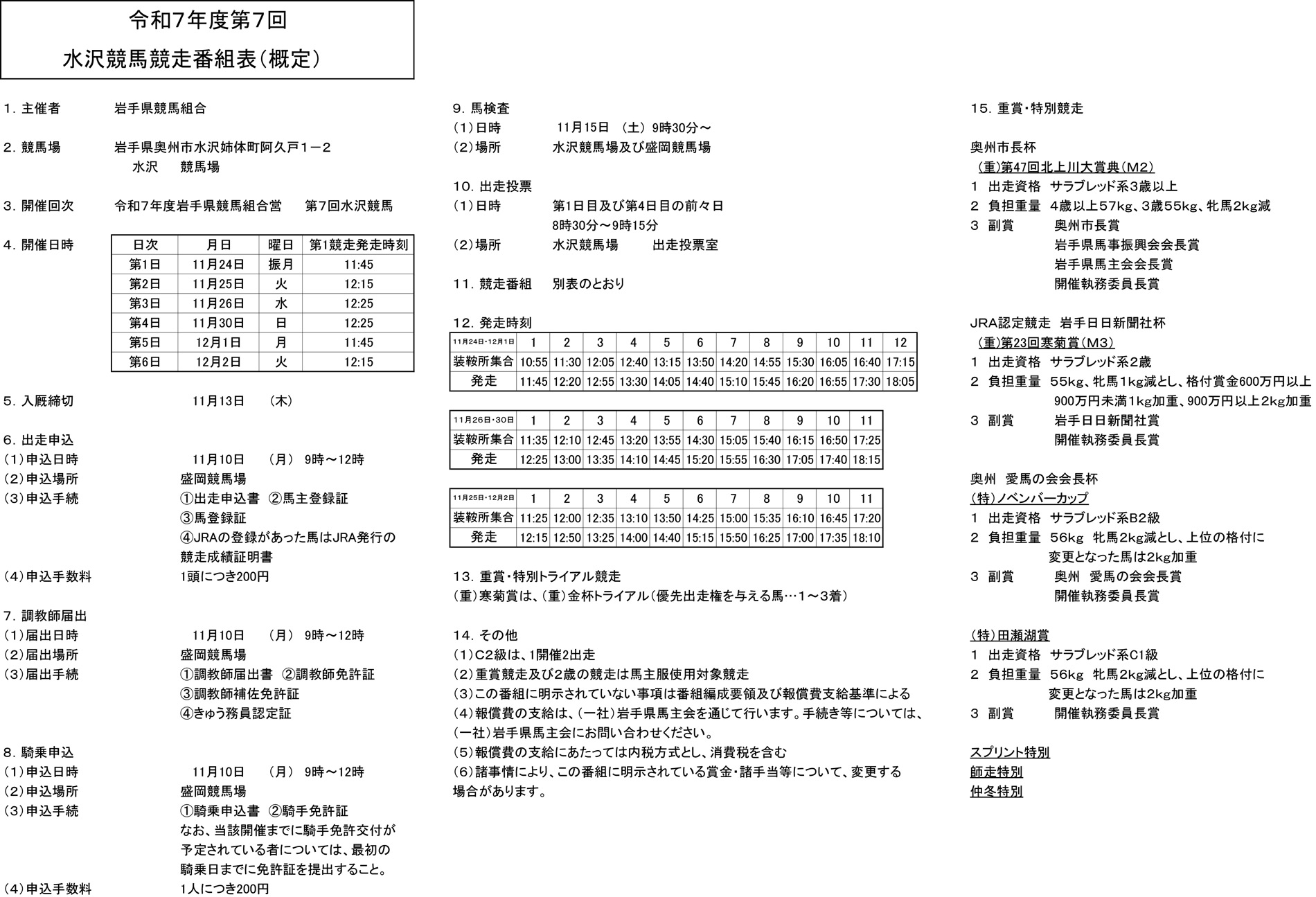 令和7年度 第7回水沢競馬概定番組(11月24日~12月2日)