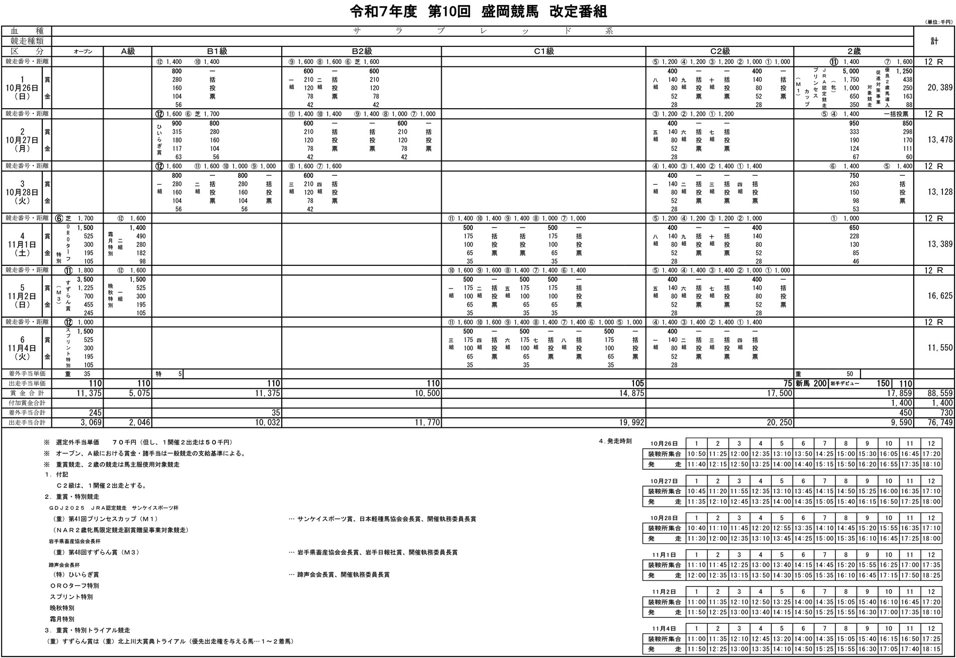令和7年度 第10回盛岡競馬改定番組(10月26日~11月4日)