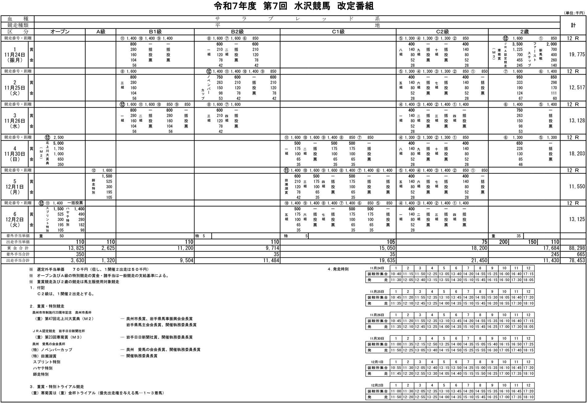 令和7年度 第7回水沢競馬改定番組(11月24日~12月2日)