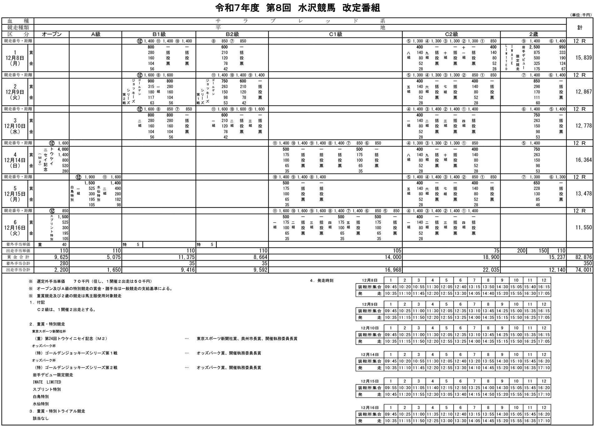 令和7年度 第8回水沢競馬改定番組(12月8日~12月16日)