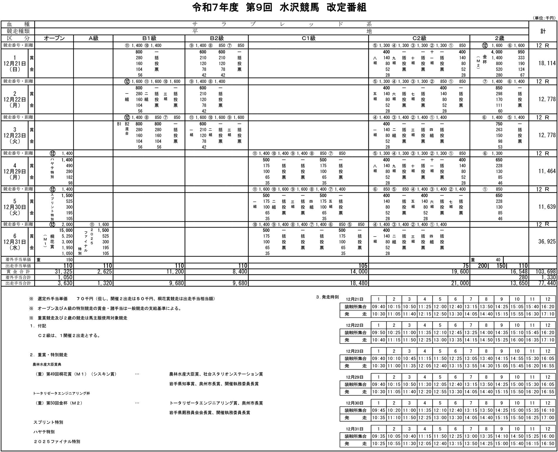 令和7年度 第9回水沢競馬改定番組(12月21日~12月31日)