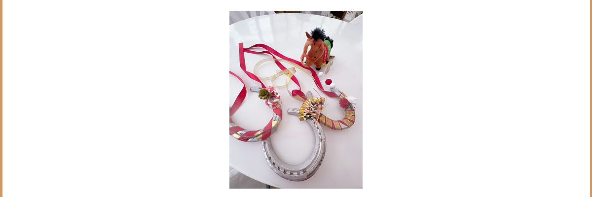 今年の岩手競馬のレースで実際に使われた蹄鉄を使ったオリジナルのお正月飾りが作れるワークショップを行います。幸運・魔除けのお守りとされている蹄鉄で午年のお正月飾りを作ってみませんか?
