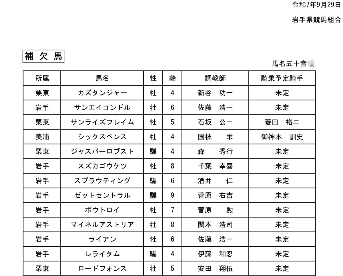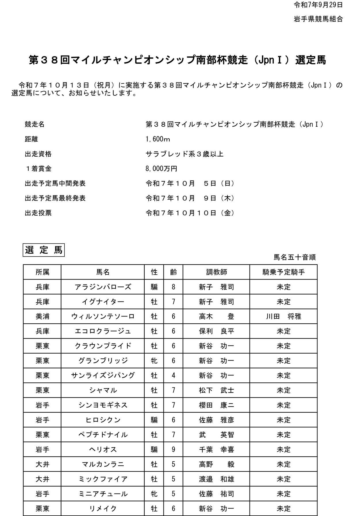 第38回マイルチャンピオンシップ南部杯JpnI競走 出走予定馬の選定