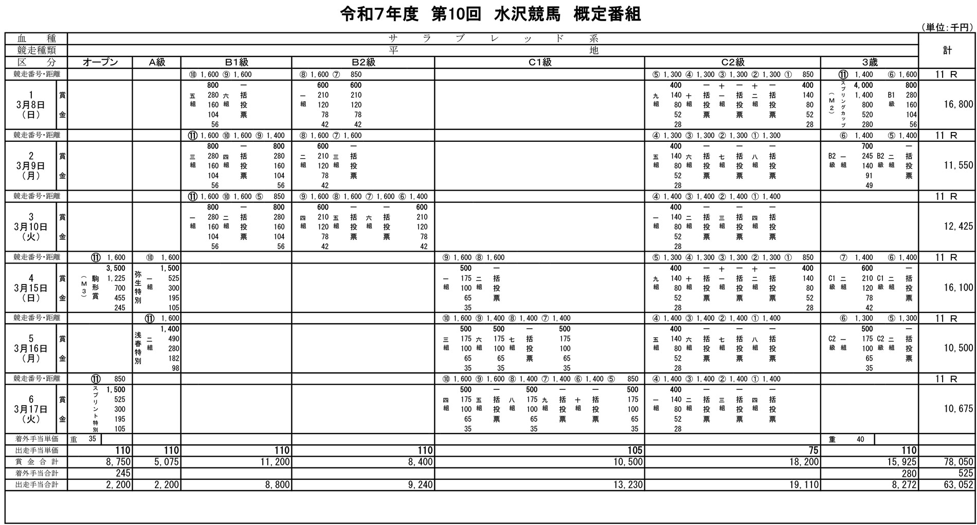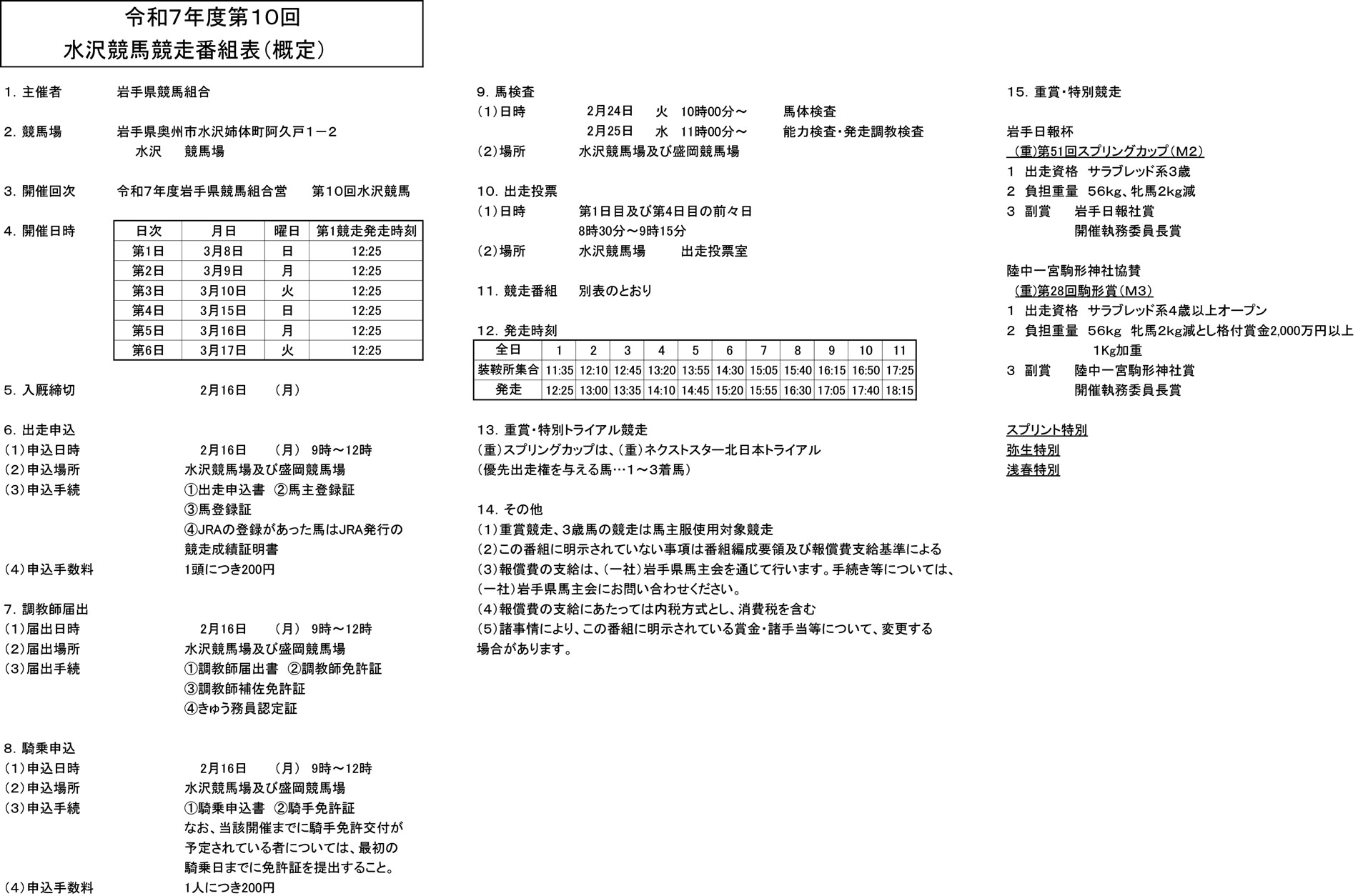 ※3歳重賞「ネクストスター北日本(北日本交流で門別競馬との持ち回り)」が令和8年度以降岩手競馬実施で固定となったことに伴い、令和7年度の年間重賞計画にはありませんでしたが、3/8(日)に3歳重賞「スプリングカップ」を実施いたします。