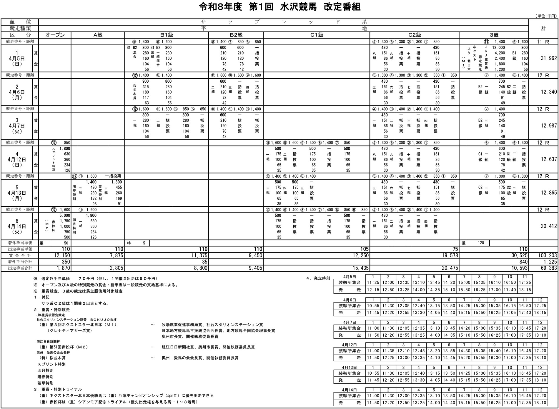 令和8年度 第1回水沢競馬改定番組(4月5日~4月14日)