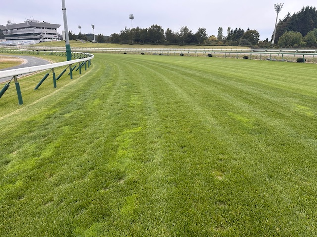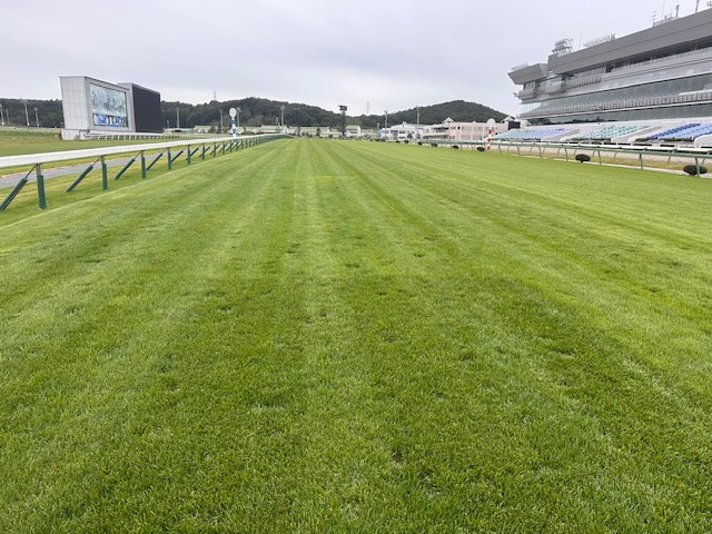 芝の生育管理のため目砂・肥料散布、芝刈りを実施しています。